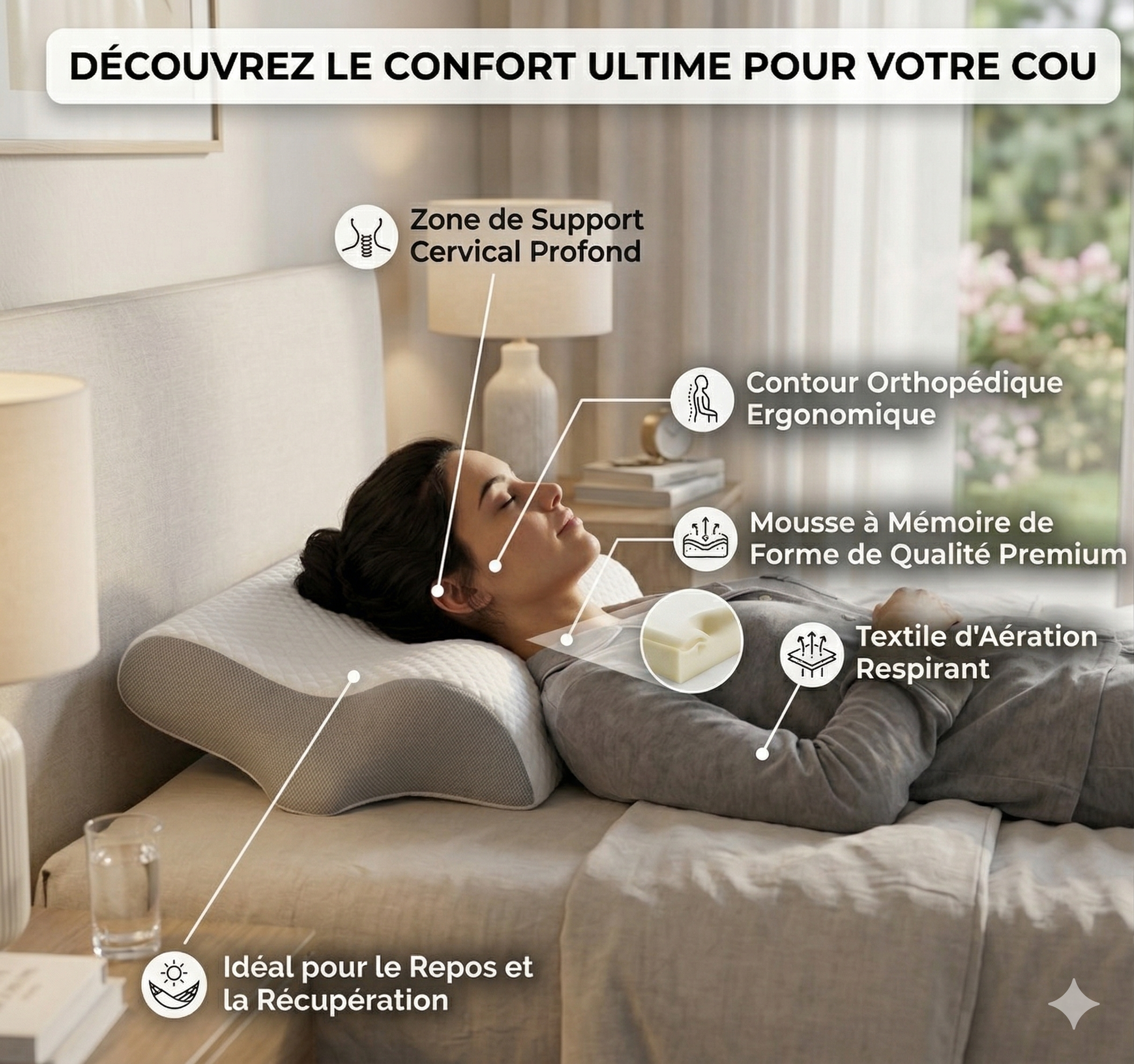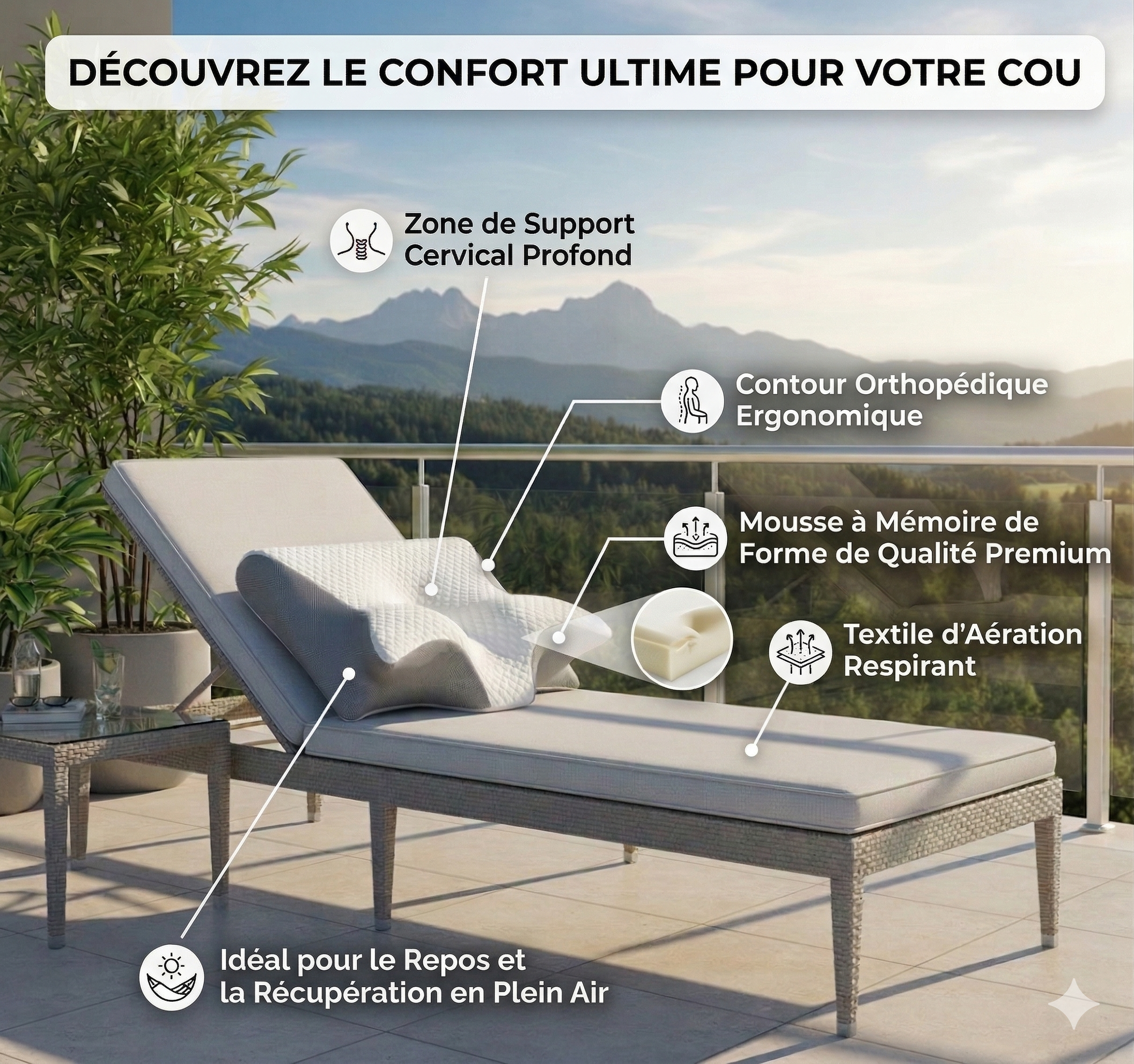 Soutien Cervical Scientifique : Conçu pour décompresser instantanément vos vertèbres et aligner votre colonne.
