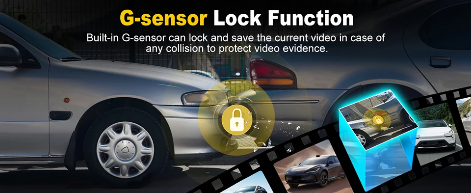 The built-in G-sensor automatically detects collisions and locks the video to prevent overwriting—ensuring critical evidence is always preserved when you need it most.