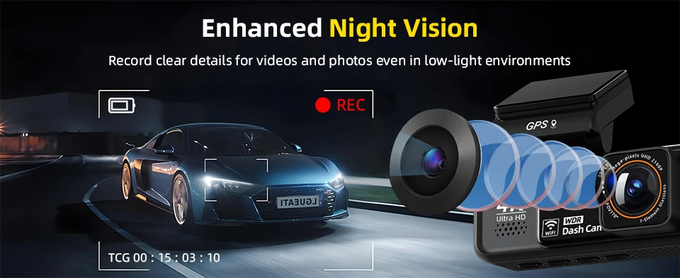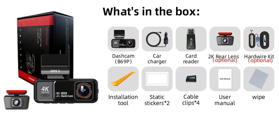 ➤Add Features: Night Vision, 3840x2160P front Camera, 4K video resolution, WiFi, Built-in GPS tracking