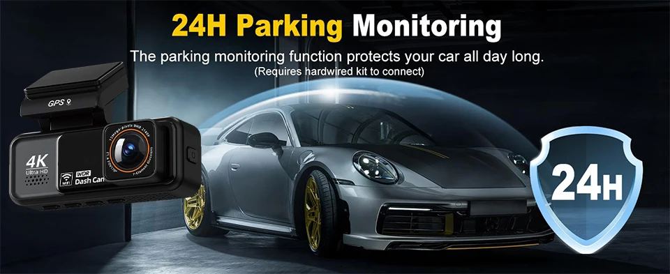 The parking monitoring function protects your car all day long.(Requires hardwired kit to connect)