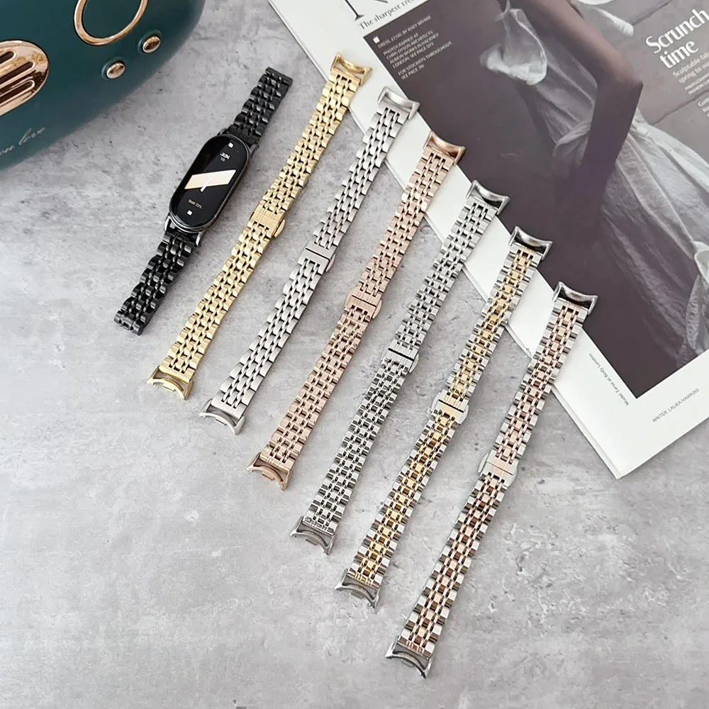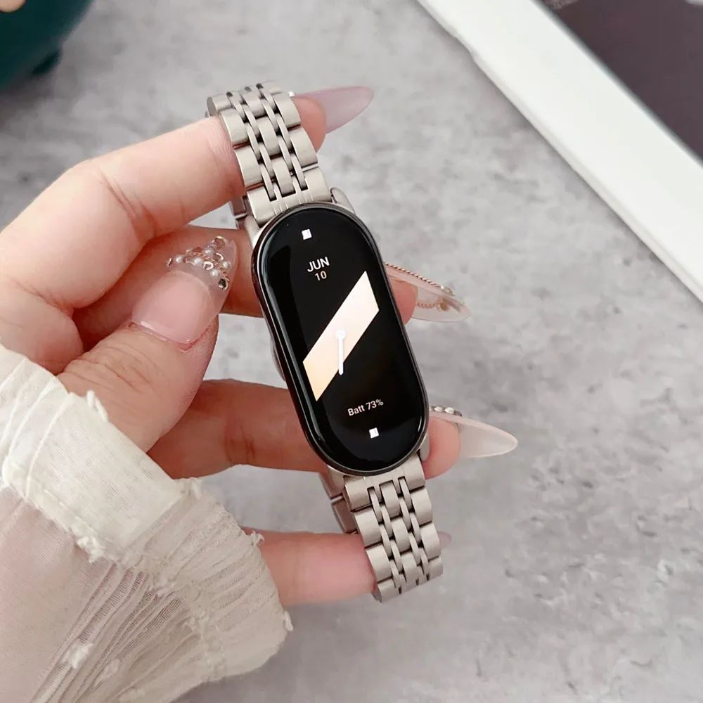 Bands for Smart Mi Band 8/9/10 Bracelet with Link Removal tool Metal Wristband Strap for Xiaomi Mi Band 8 Watchband Men Women