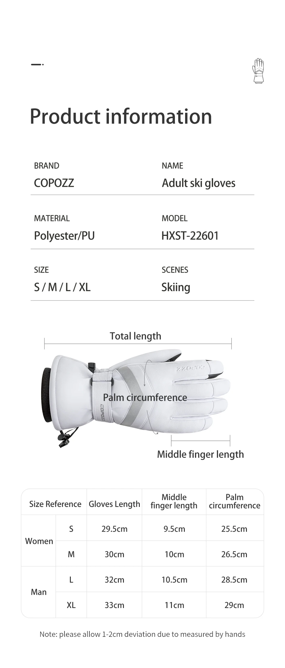 COPOZZ New Winter Men Women Ski Gloves Windproof Warm Waterproof Touch-Screen Non-slip Snowboard Snowmobile Thicken Skiing Glove