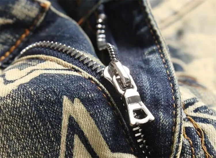 High street trendy brand new men's retro distressed distressed jeans patch slim fit leggings
