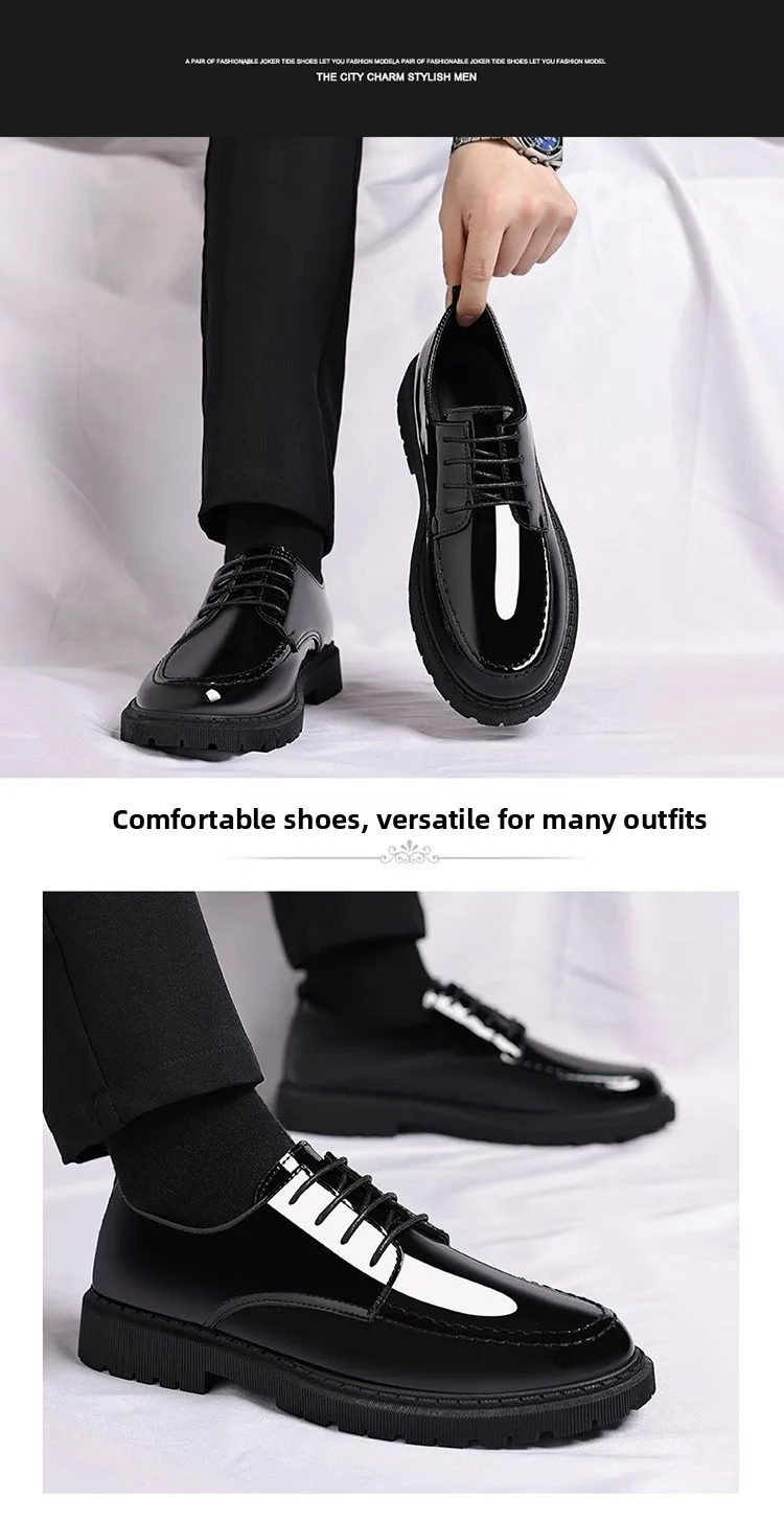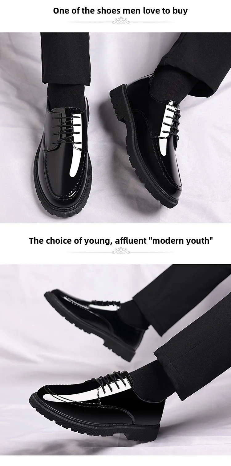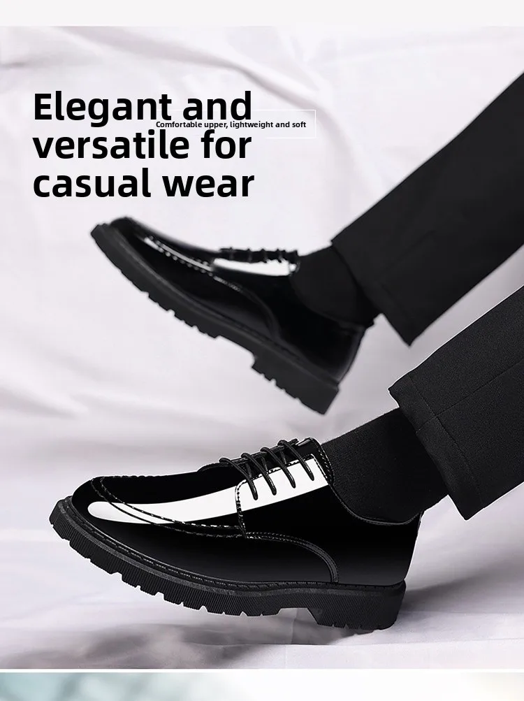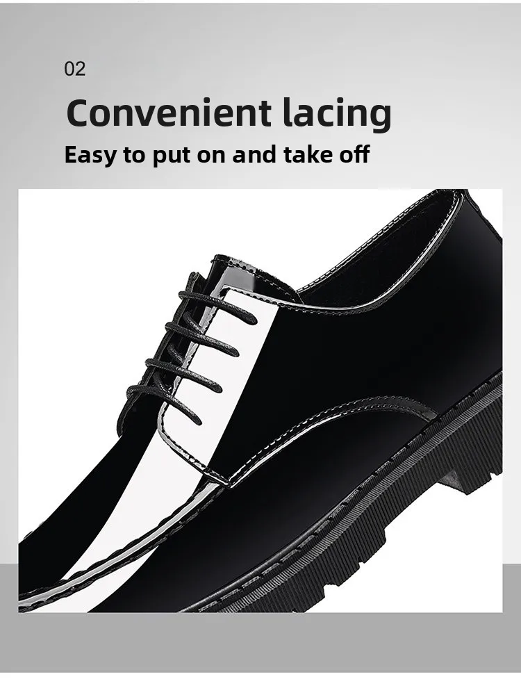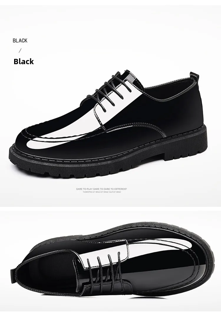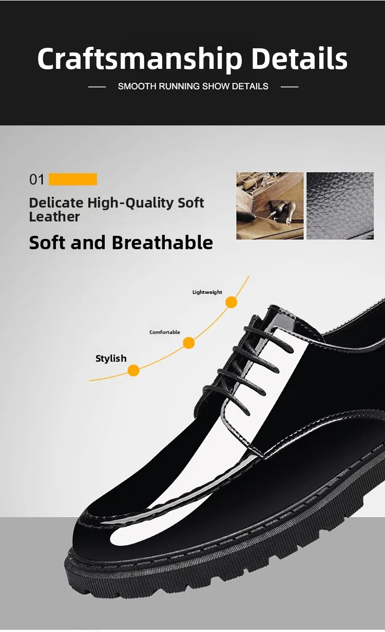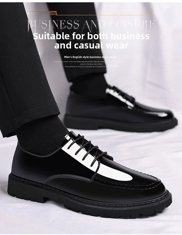 Men's Invisible Heightening Bean Bean Shoes Mirror Surface Leather Shoes Casual Business Shoes round Toe Mid Heel PVC Outsole