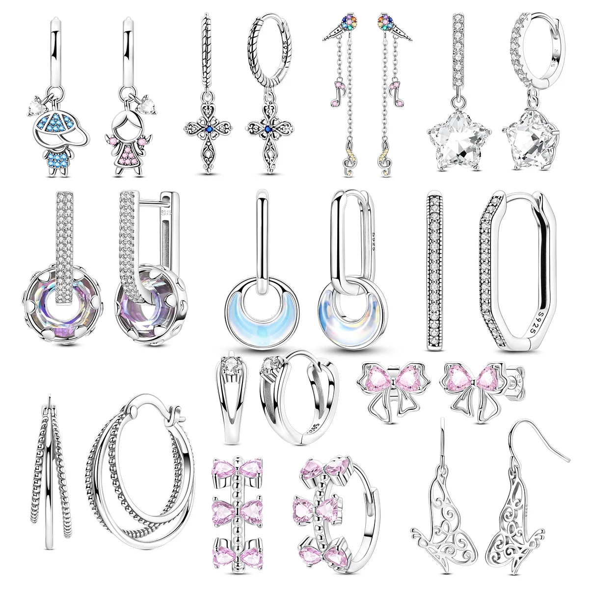 Silver earrings 925 sterling silver Bow star Butterfly zircon twist around jewelry earrings female earrings fashion accessories