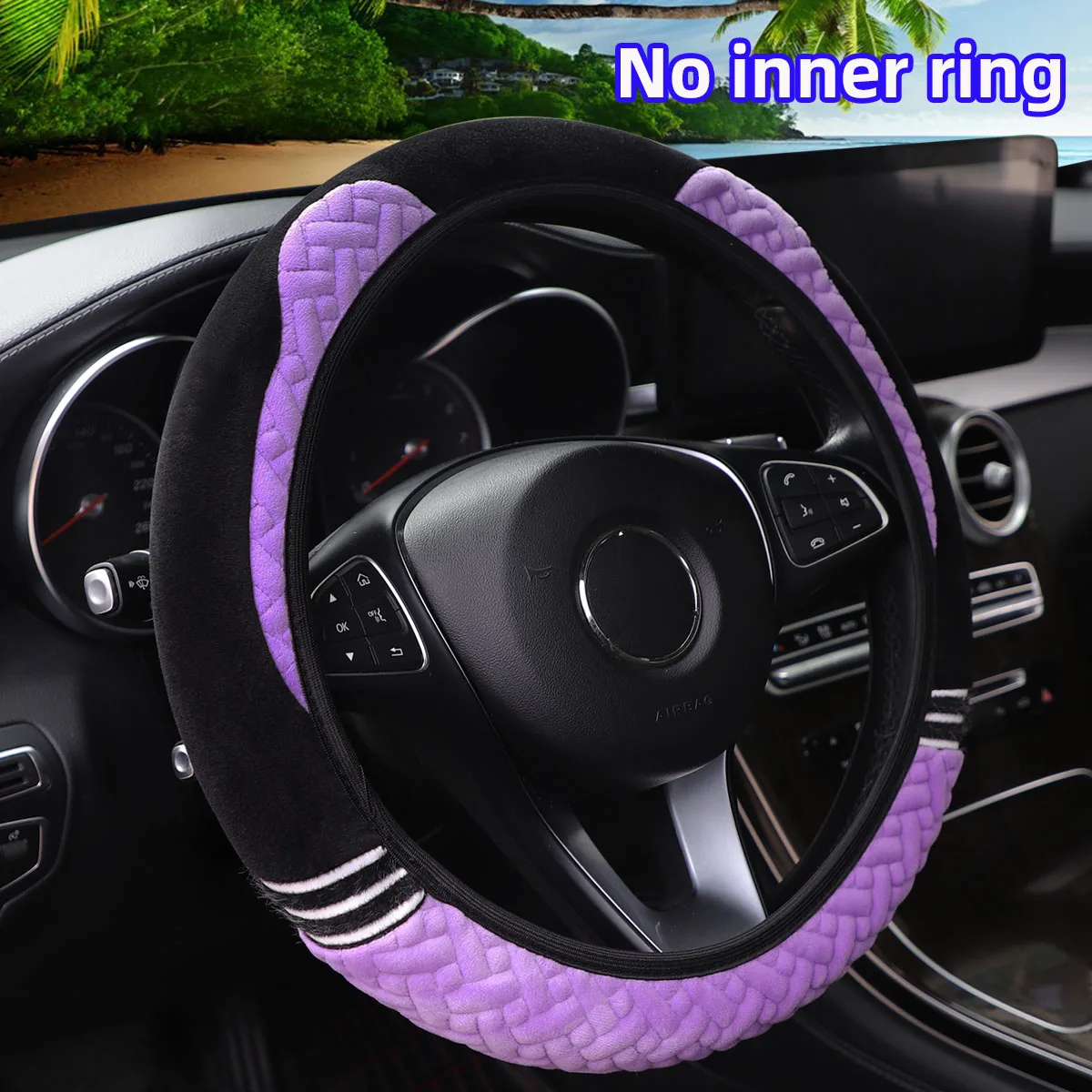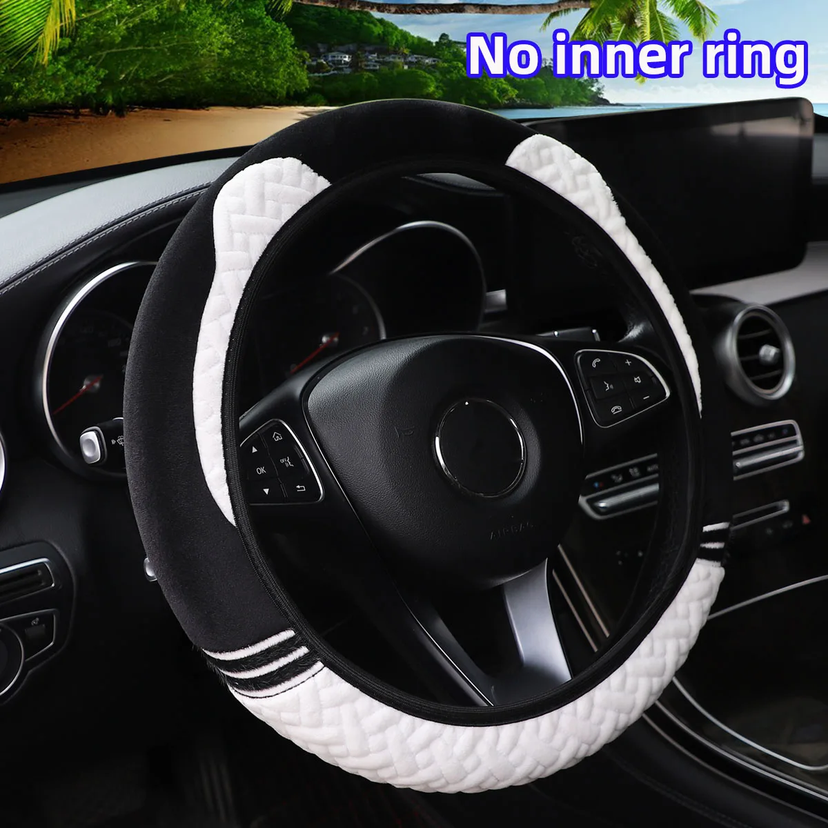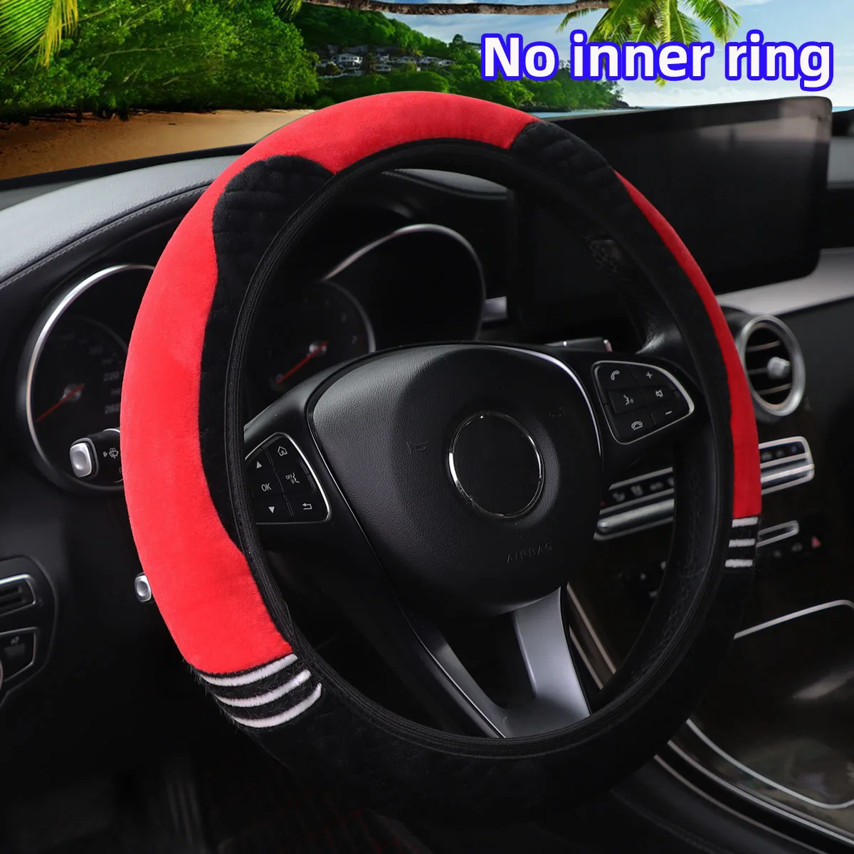 Super soft plush ear winter warm-hand car rimless steering wheel cover suitable for 14.5 - 15 inch car accessories for women