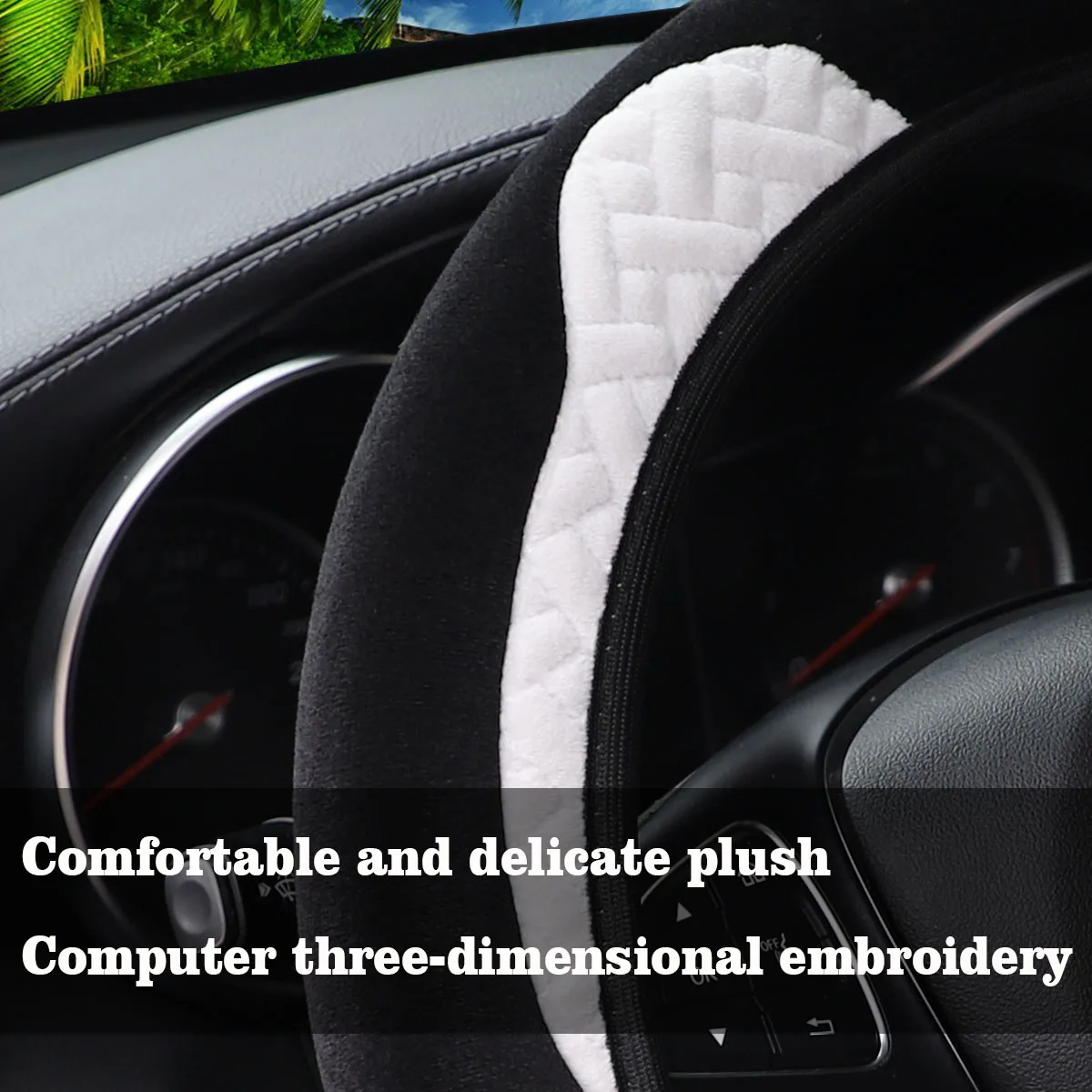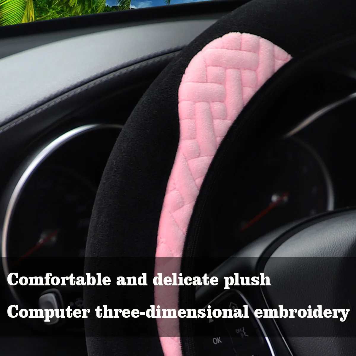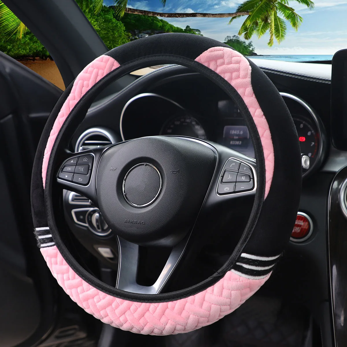 Super soft plush ear winter warm-hand car rimless steering wheel cover suitable for 14.5 - 15 inch car accessories for women