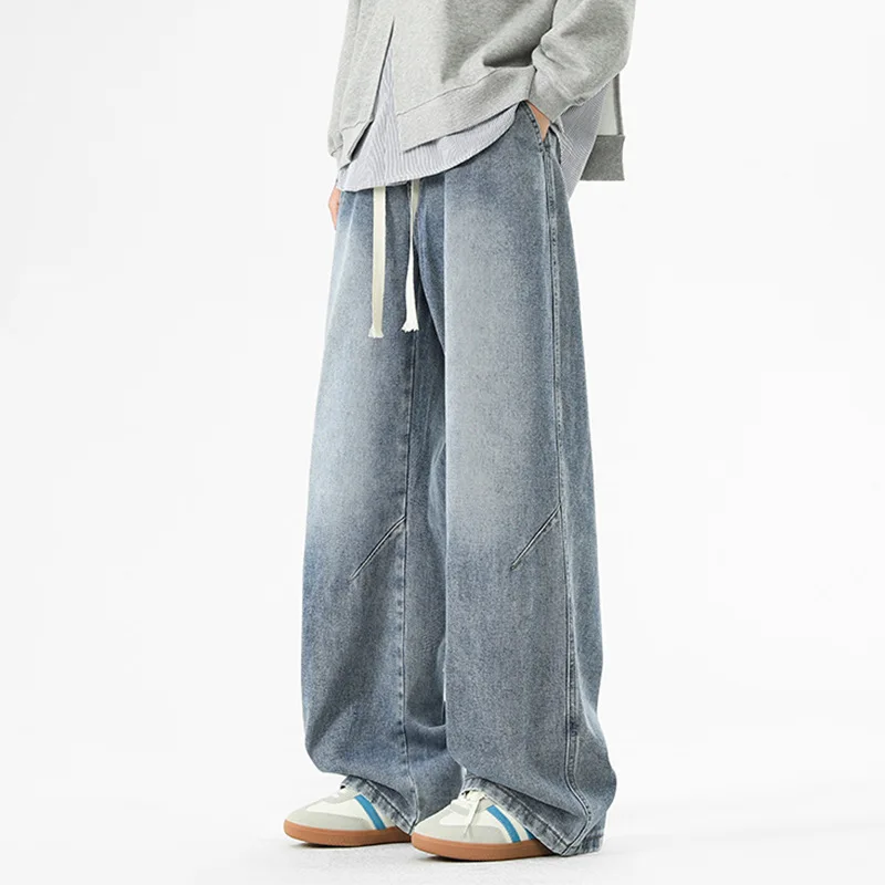 2025 New Streetwear Baggy Jeans for Men Korean Fashion Wide Leg Straight Denim Pants Male Elastic Waist Classic Y2K Blue Jean