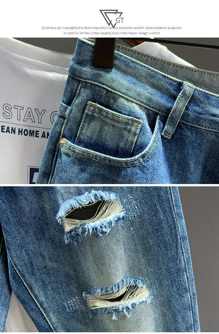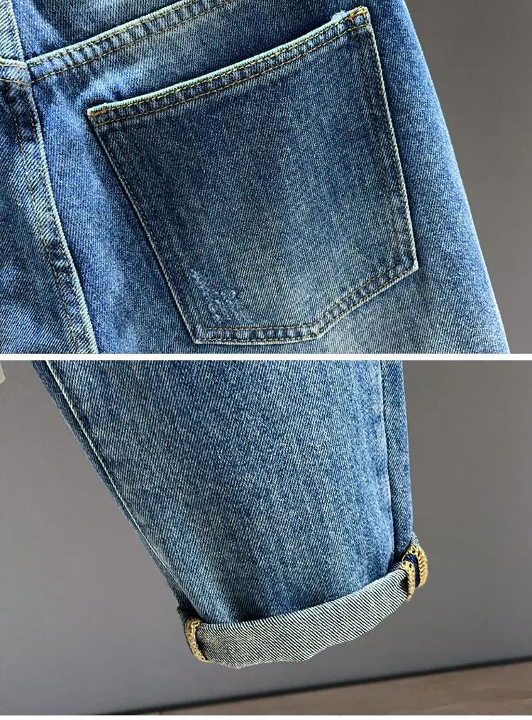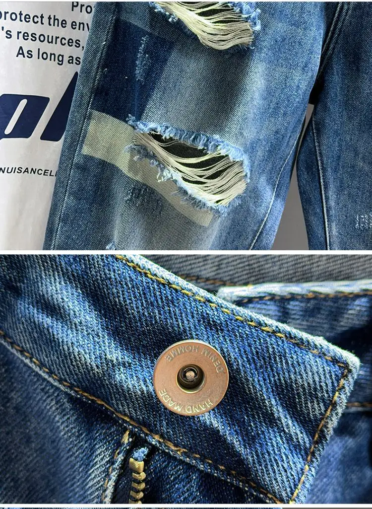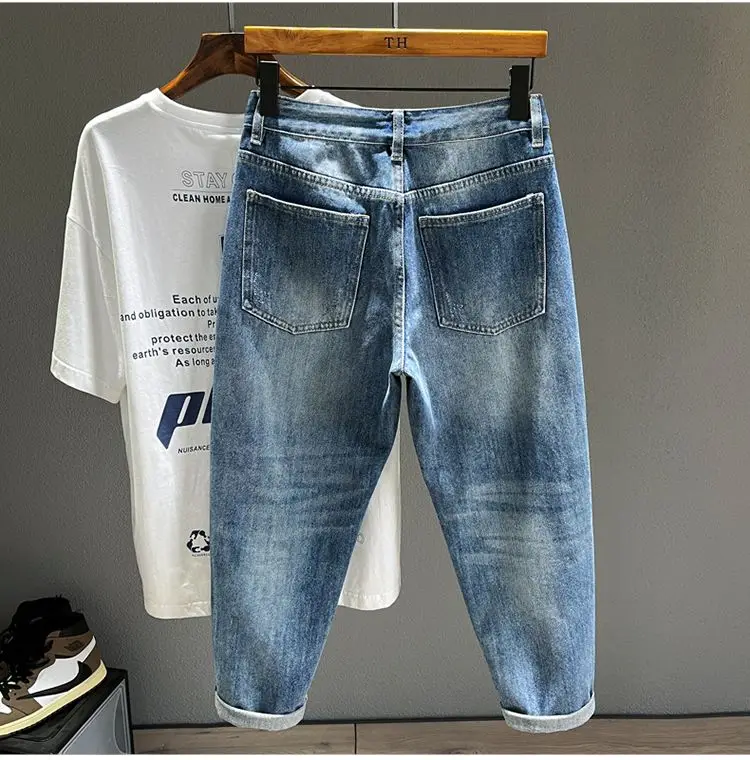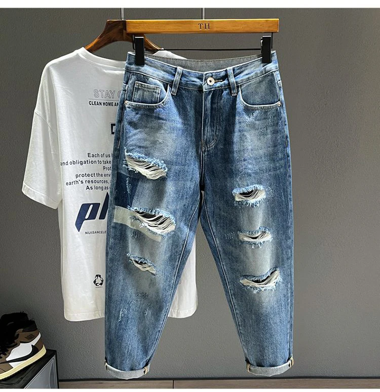 Ripped Jeans Men's Pure Cotton Loose Harem Hole Denim Pants Fashion Hip-hop Rock Streetwear Autumn Ankle Length Trousers