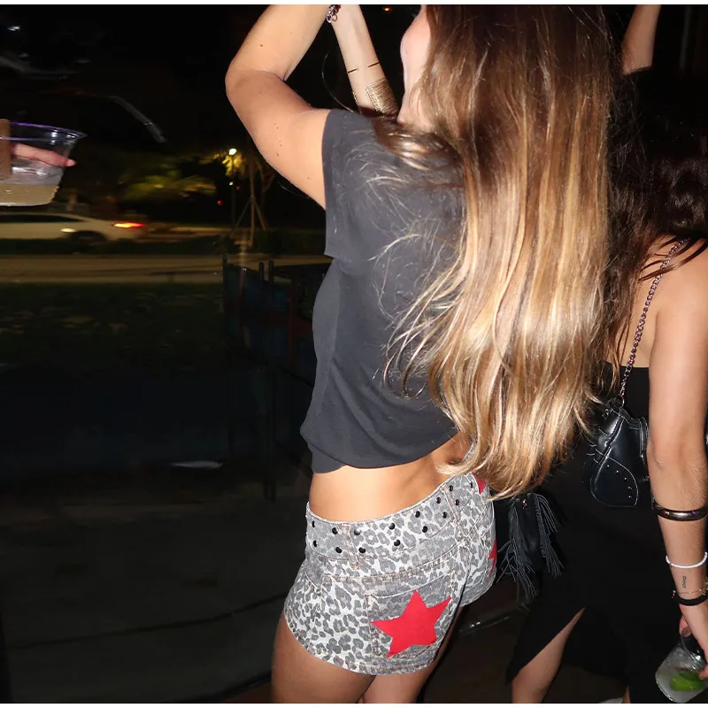 Street Women's Denim Shorts Pentagram Pattern Pocket Low Waist Slim Zipper Female Mini Jeans 2026 Spring Summer Chic Lady Shorts