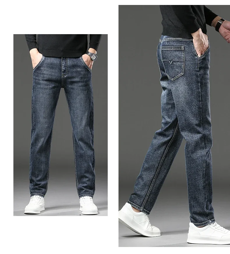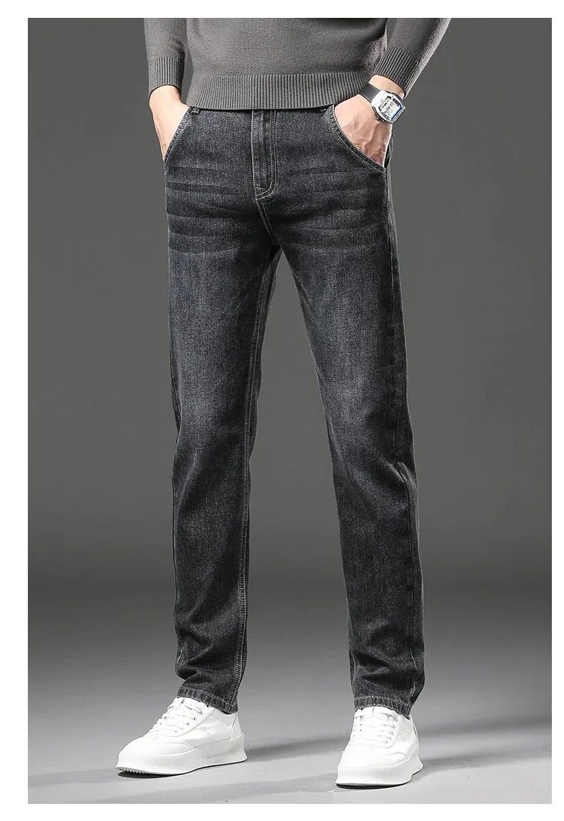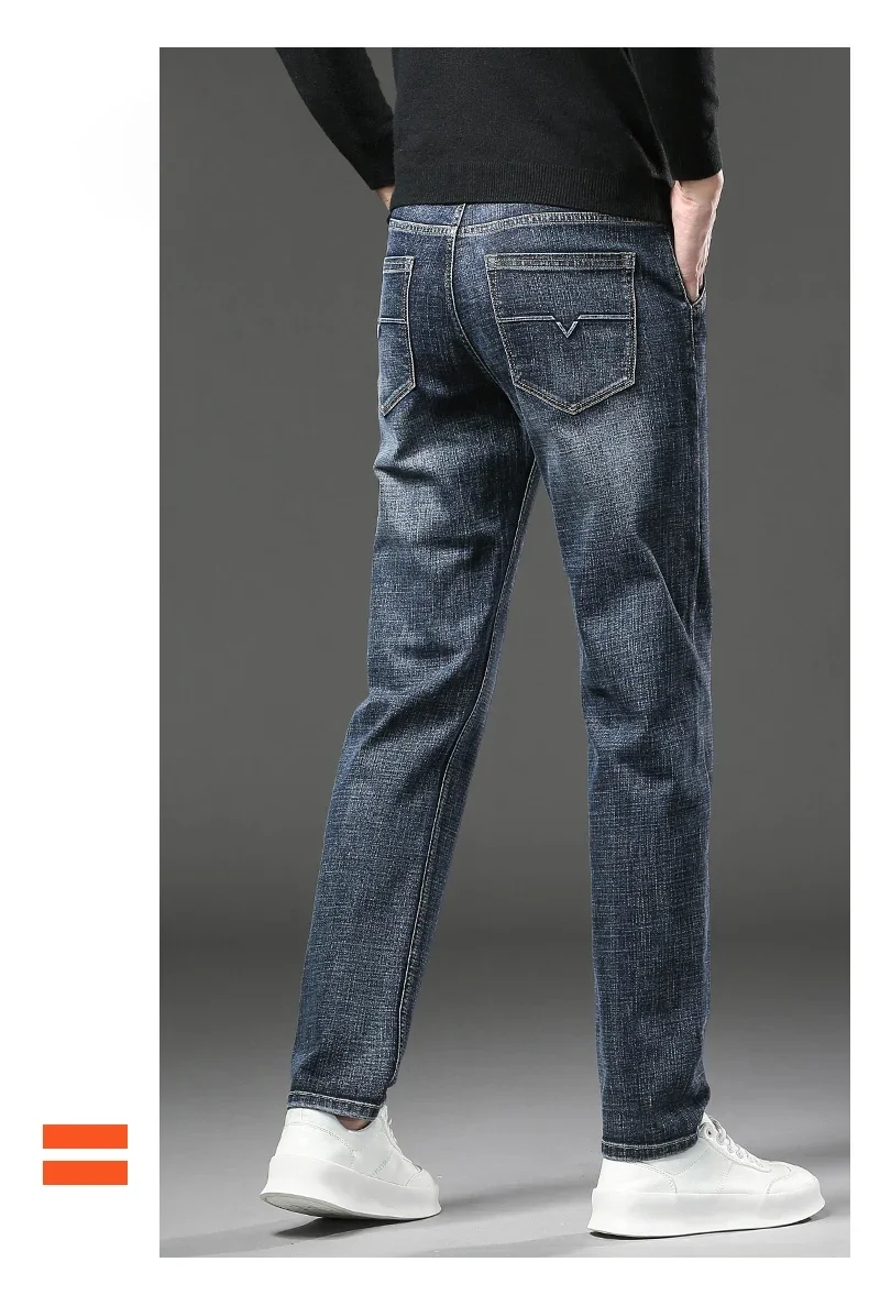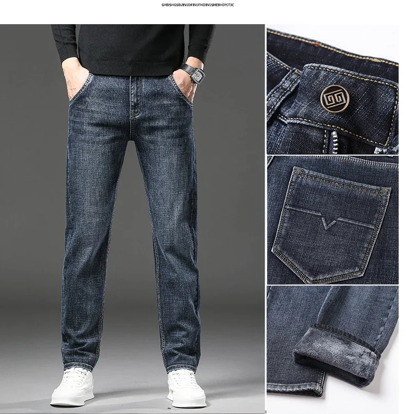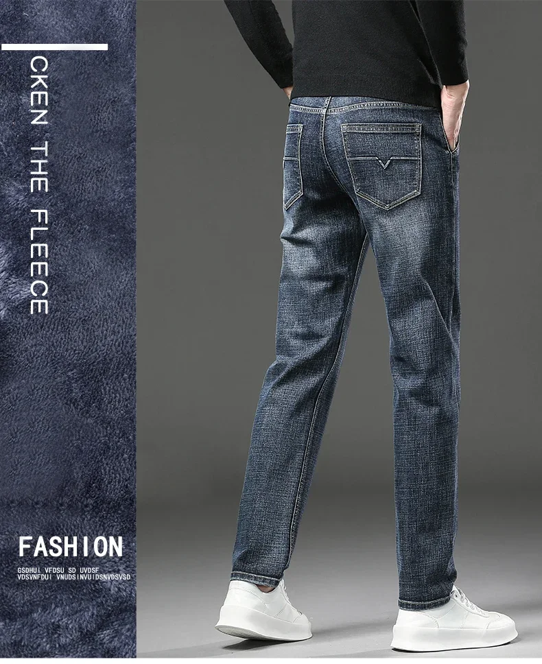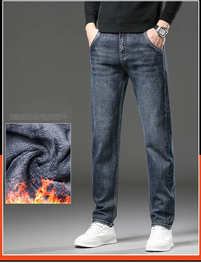 Winter Jeans Men's Fleece New Warm Stretch vintage Pants Fashion Straight Slim Thick Plush Velvet Male Brand Denim Trousers