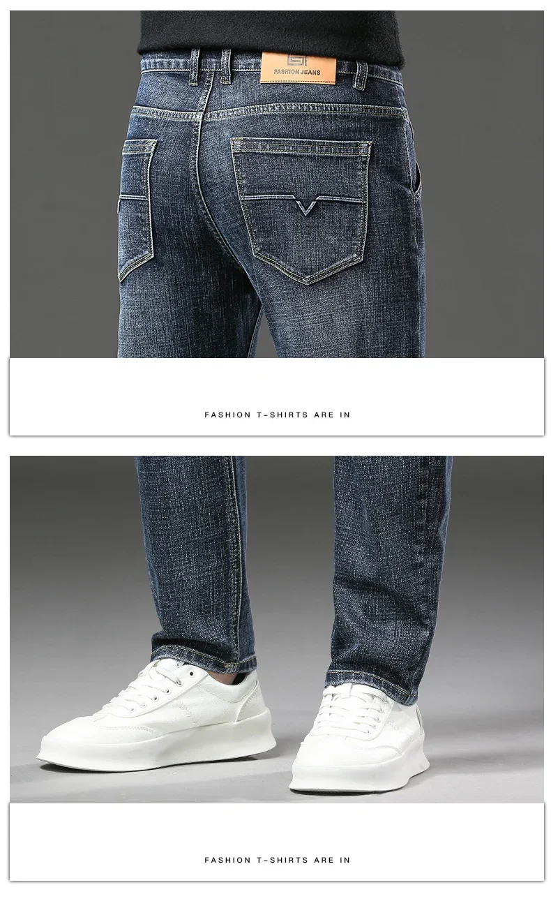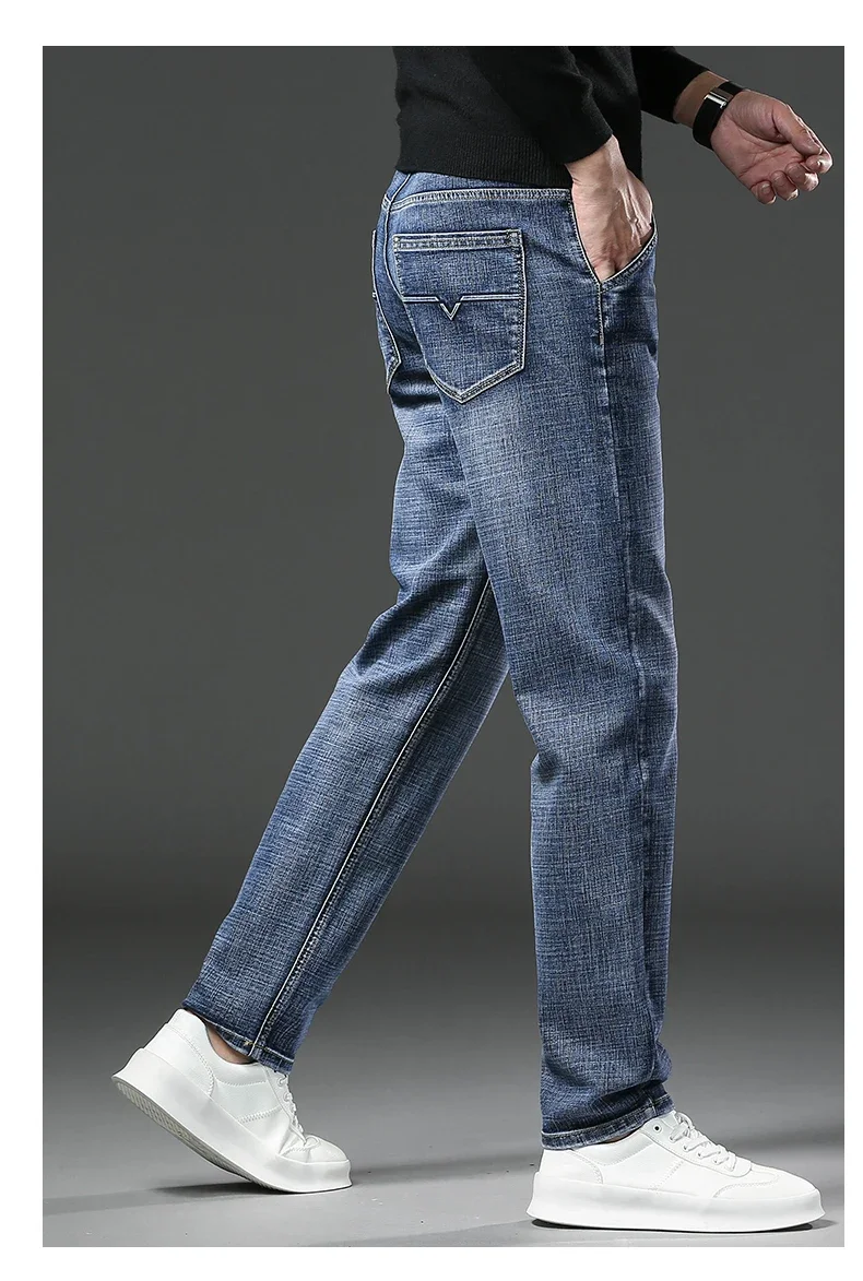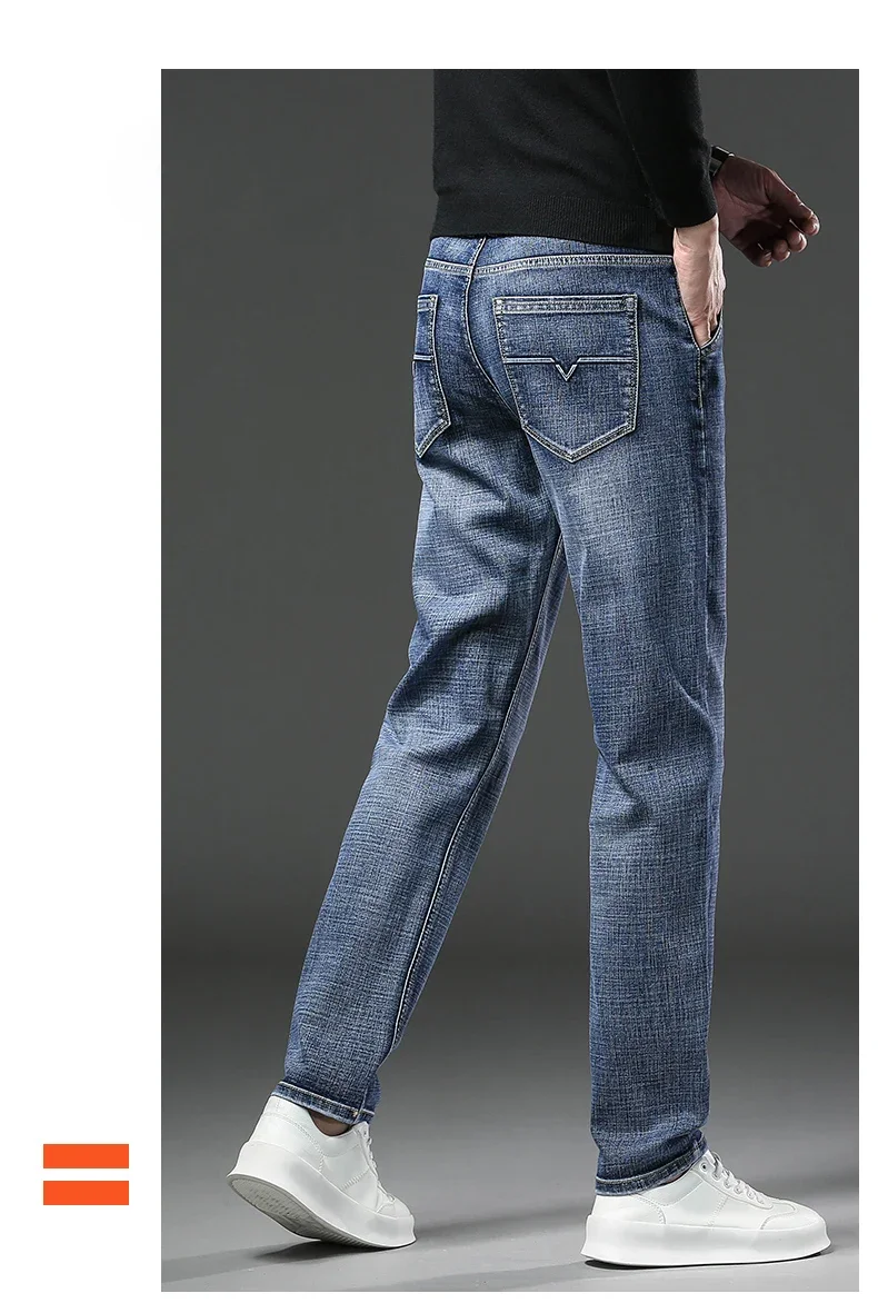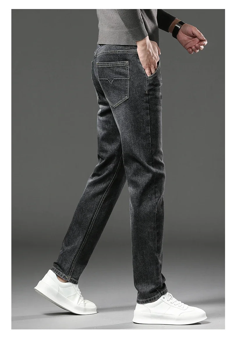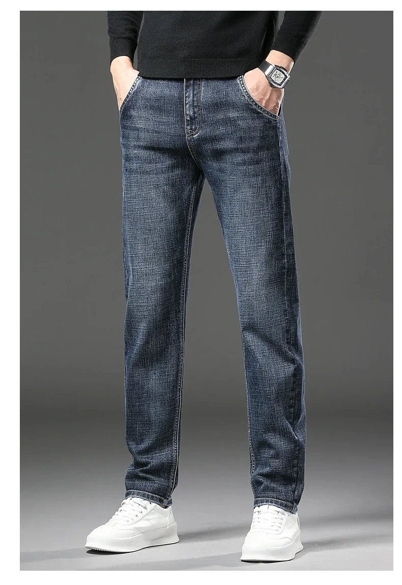 Winter Jeans Men's Fleece New Warm Stretch vintage Pants Fashion Straight Slim Thick Plush Velvet Male Brand Denim Trousers