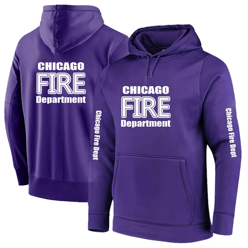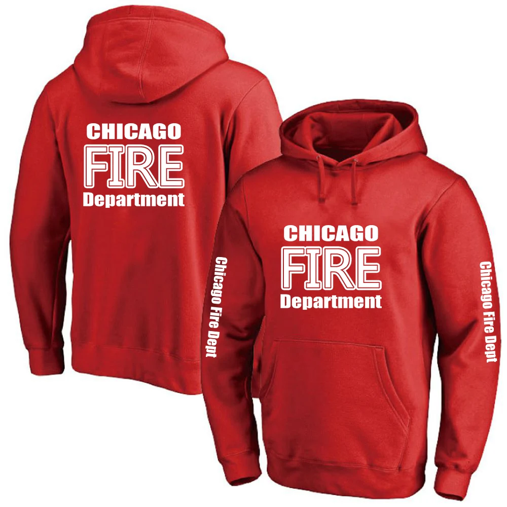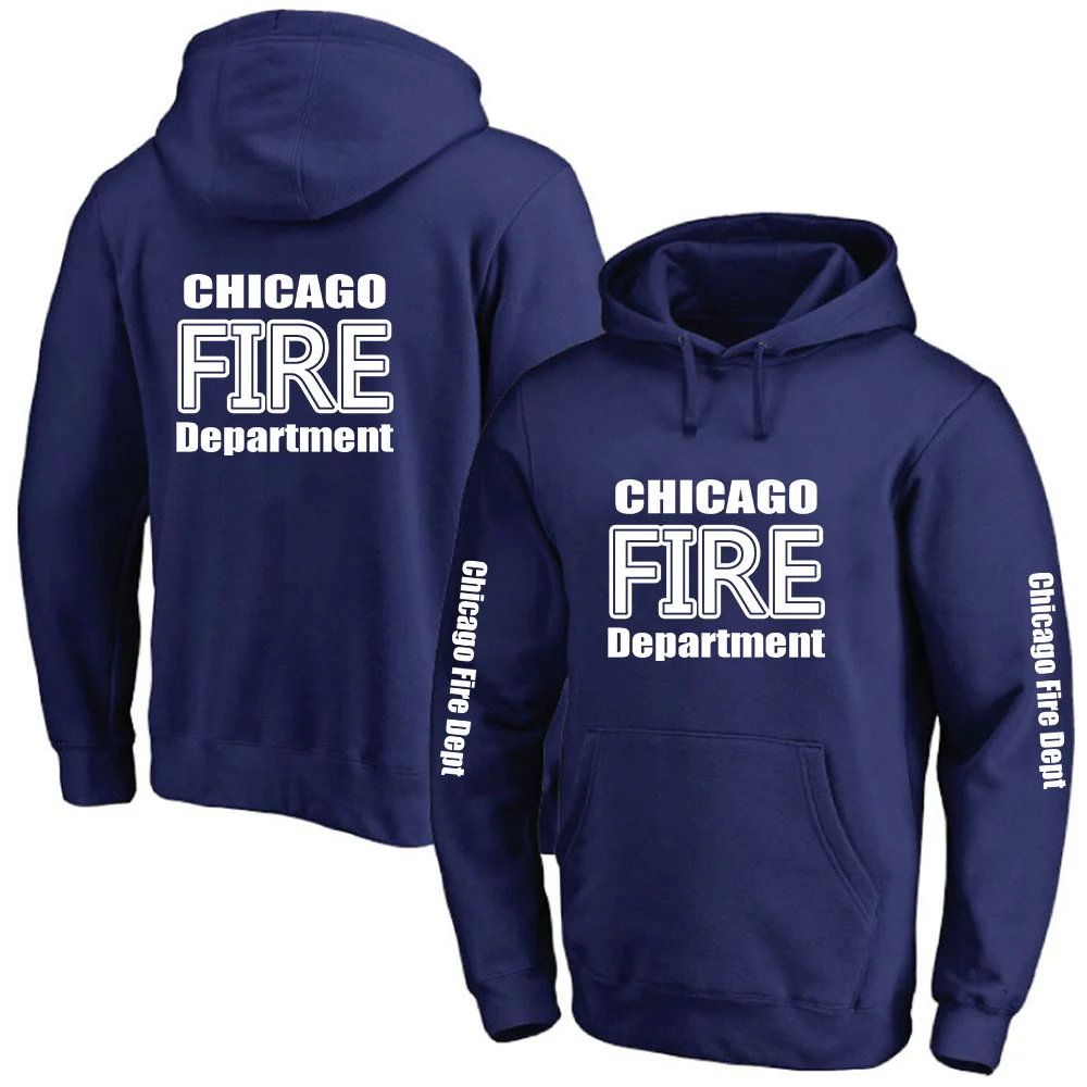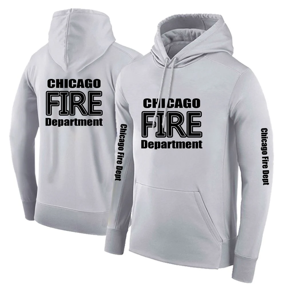 2025 Primăvara și toamna Chicago Fire Department Show TV Rescue Print Men's Outdoor Classic Solid Color Sports Loose Pullover Hoodies