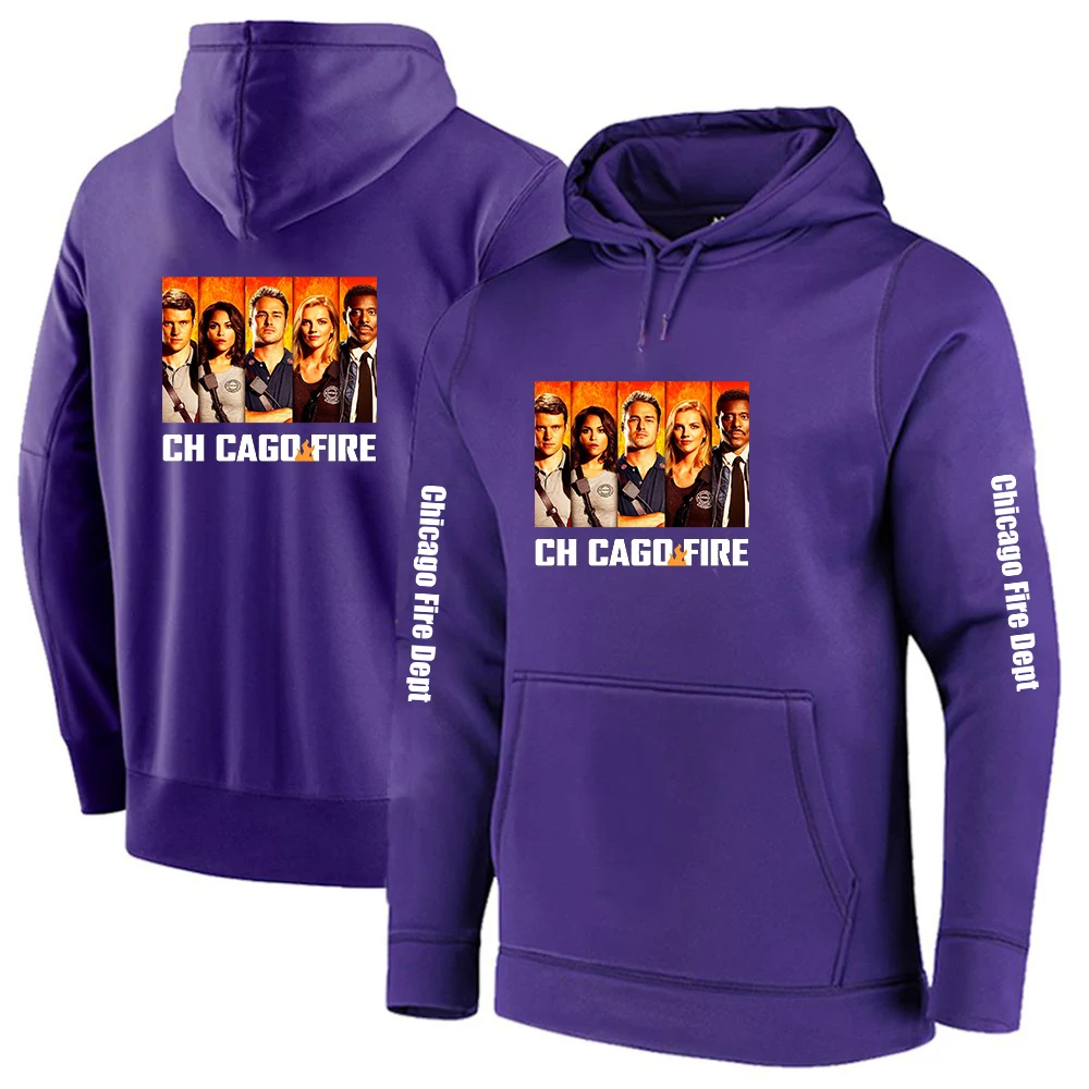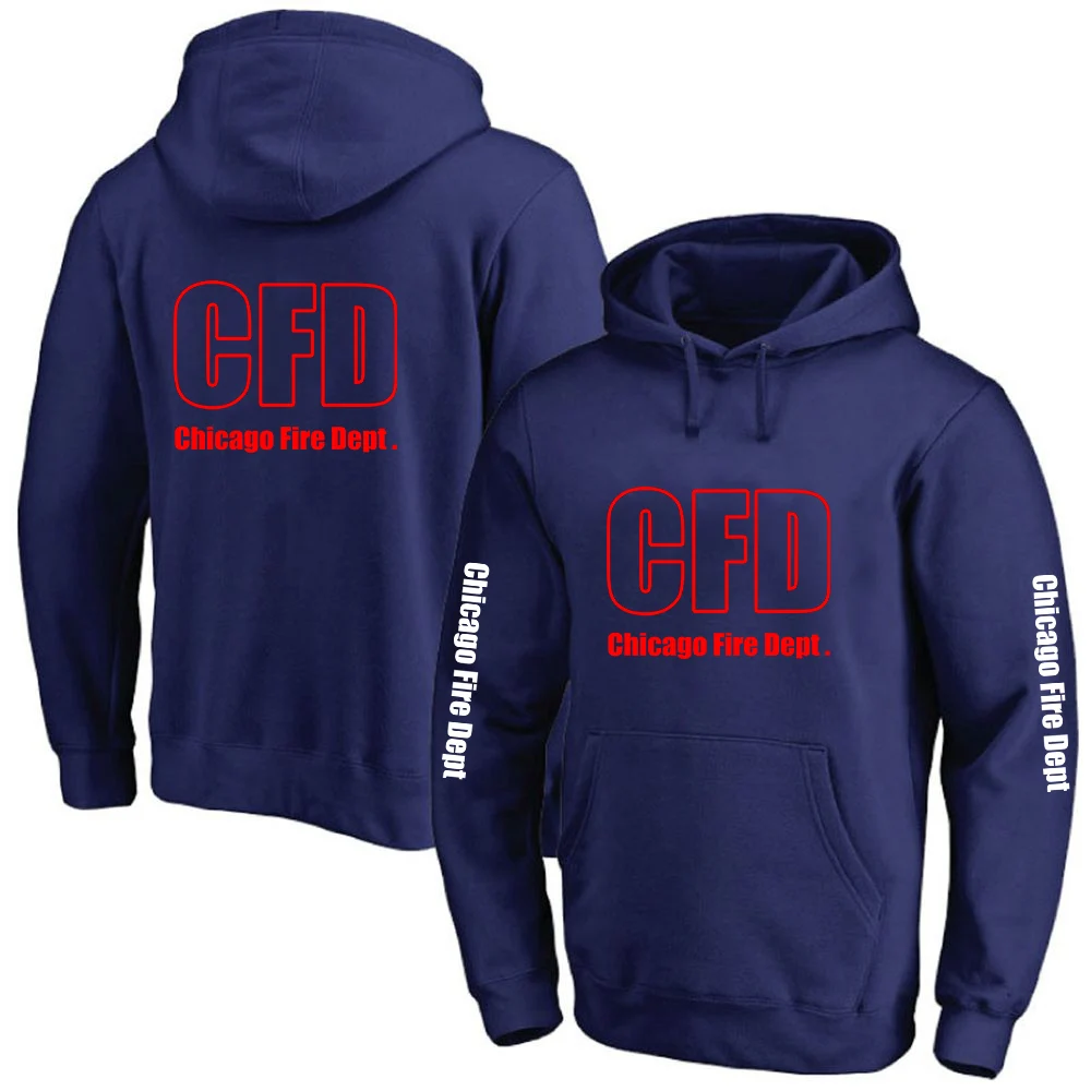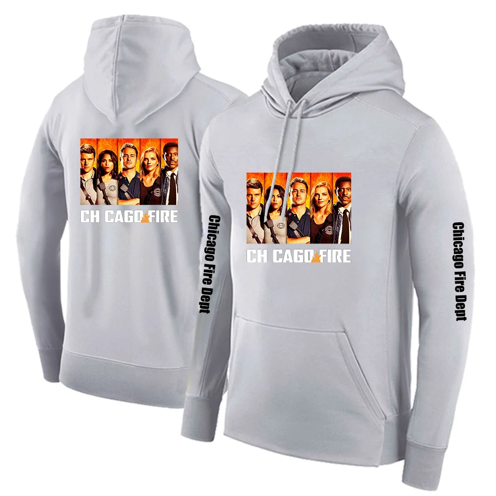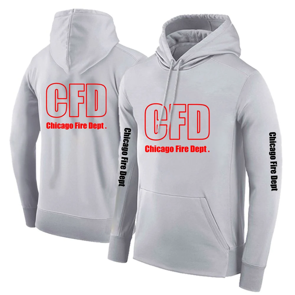 2025 Primăvara și toamna Chicago Fire Department Show TV Rescue Print Men's Outdoor Classic Solid Color Sports Loose Pullover Hoodies