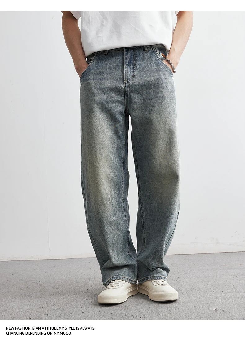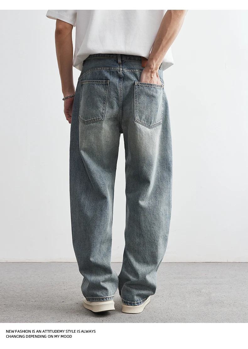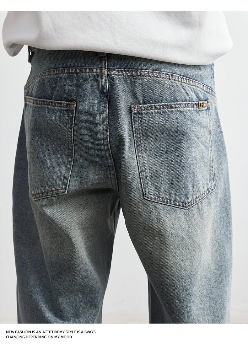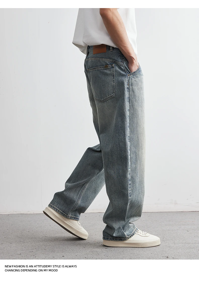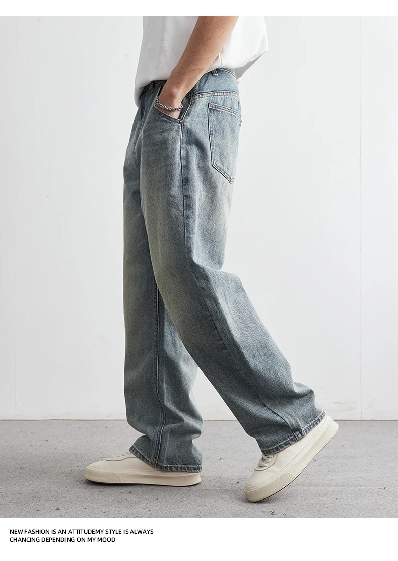 Pantaloni denim pentru bărbați, vara 2025, noi, albastru închis, spălați, blugi pentru bărbați, drepți, casual, îmbrăcăminte pentru bărbați, pantaloni largi cu picior larg, la modă, îmbrăcăminte pentru bărbați