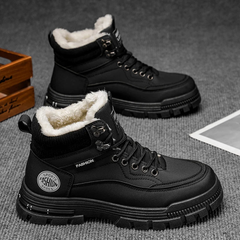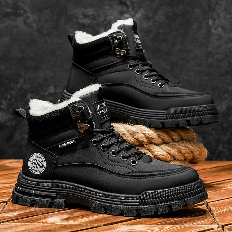 Cizme de zăpadă pentru bărbați de iarnă 2025, pantofi de iarnă din fleece cald, cu vârf înalt din bumbac, cizme de lucru retro