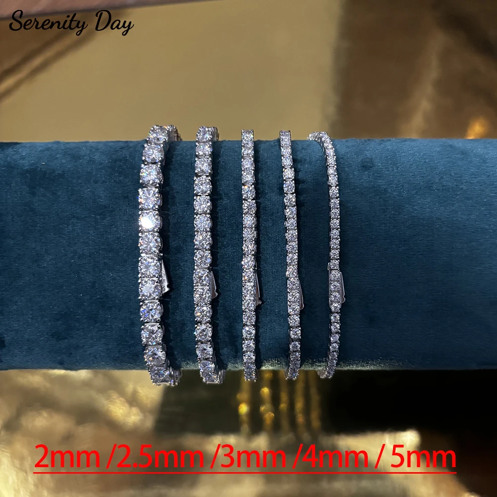Brățară tenis cu moissanit de 2 mm, 2,5 mm, 3 mm, 4 mm, 5 mm, pentru femei și bărbați, 100% argint sterling S925, placată cu 18K, cu încuietoare cu arc ascunsă