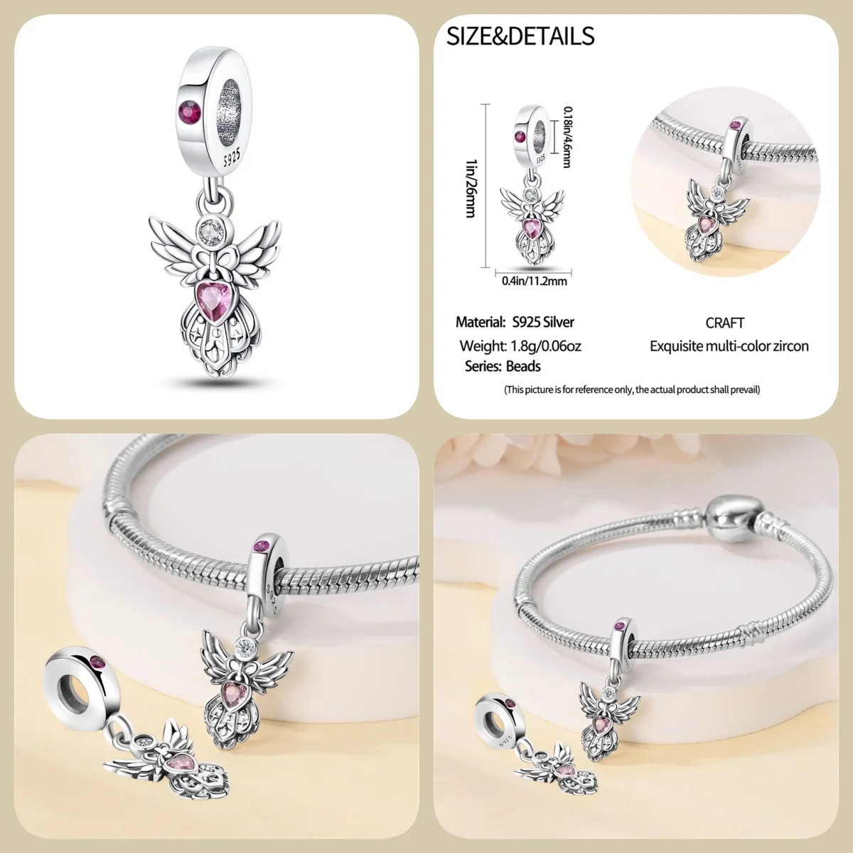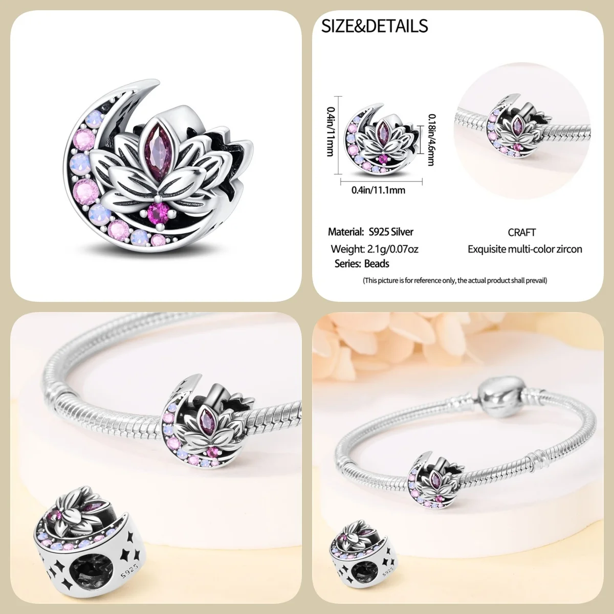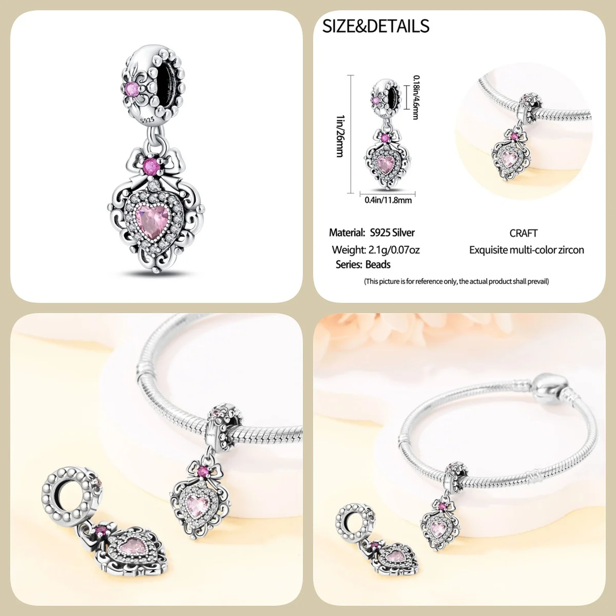 Număr model : Mărgele DIY pentru bijuterii, talismane, se potrivesc brățării originale Pandora.