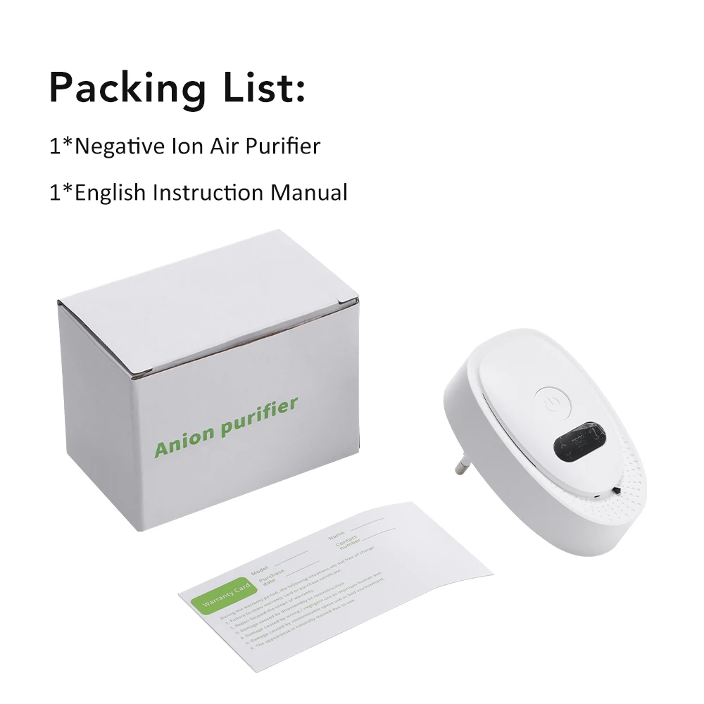 Purificator de aer mini plug-in, ionizator de aer negativ, purificator de anioni pentru birou, dormitor, elimină mirosurile și praful de formaldehidă