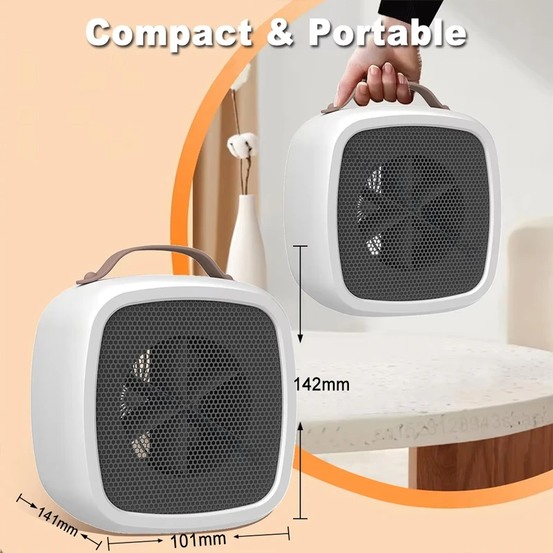 • Versatil și economisitor de spațiu — Dimensiunea compactă (101 * 141 * 142 mm / 3,97 * 5,55 * 5,59 inci) se potrivește convenabil pe birouri, mese, noptiere sau orice spațiu mic care necesită căldură rapidă. Ideal pentru a oferi căldură confortabilă în spații mici, fără a ocupa mult spațiu.
