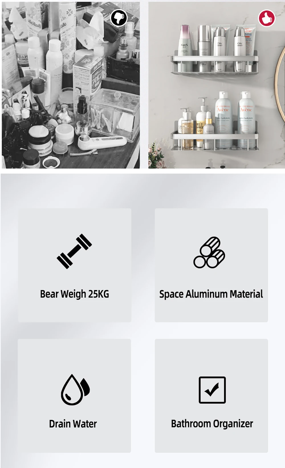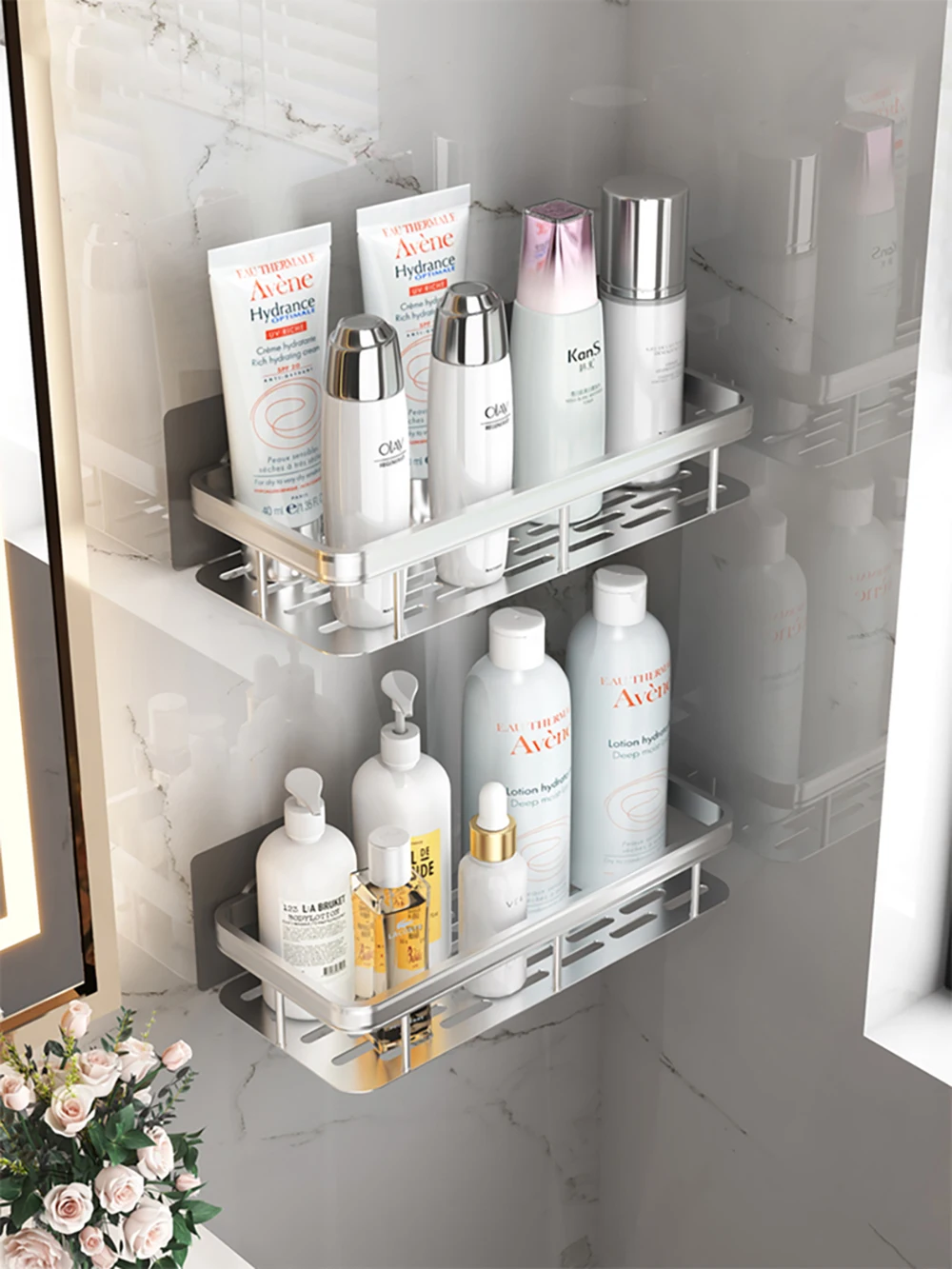 • Raft de colț: Folosește spațiul neutilizat din baie.
