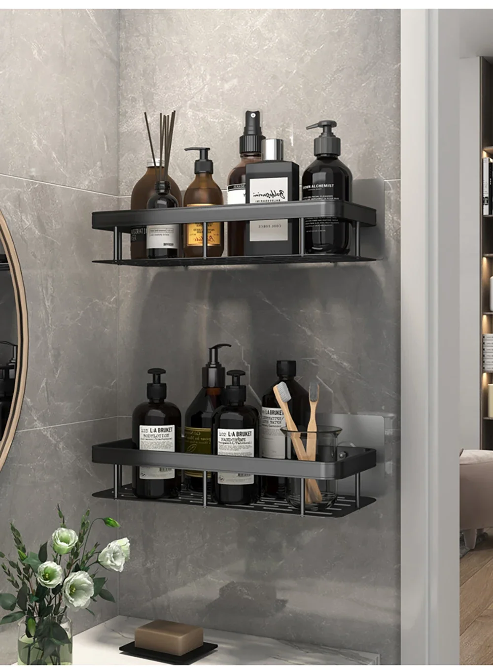 Suport de șampon pentru duș montat pe perete, suport pentru prosoape de baie, suport fără diamante, colț cu trepied, organizator de depozitare dreptunghiular